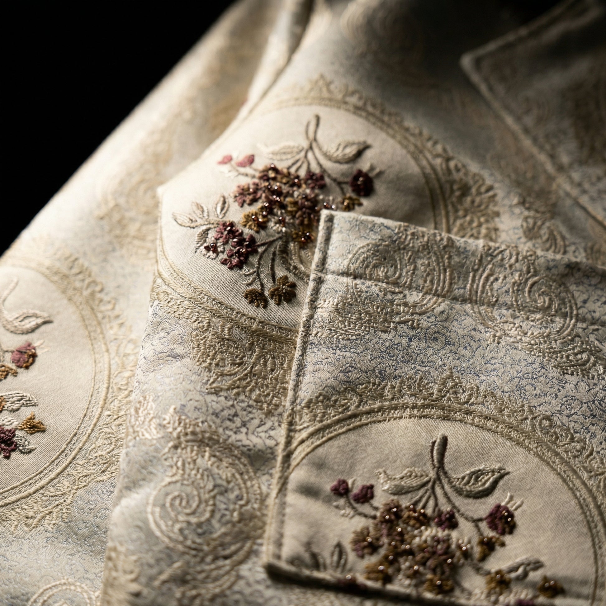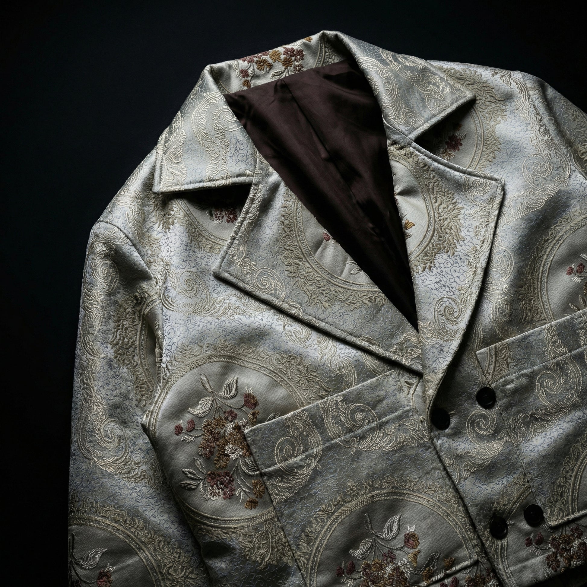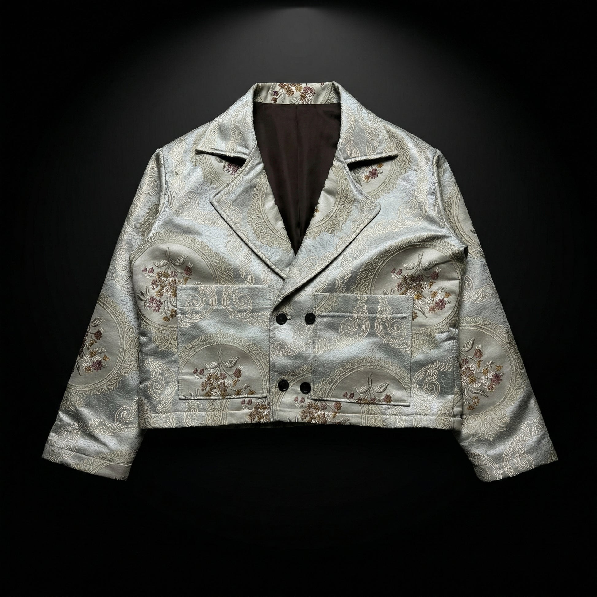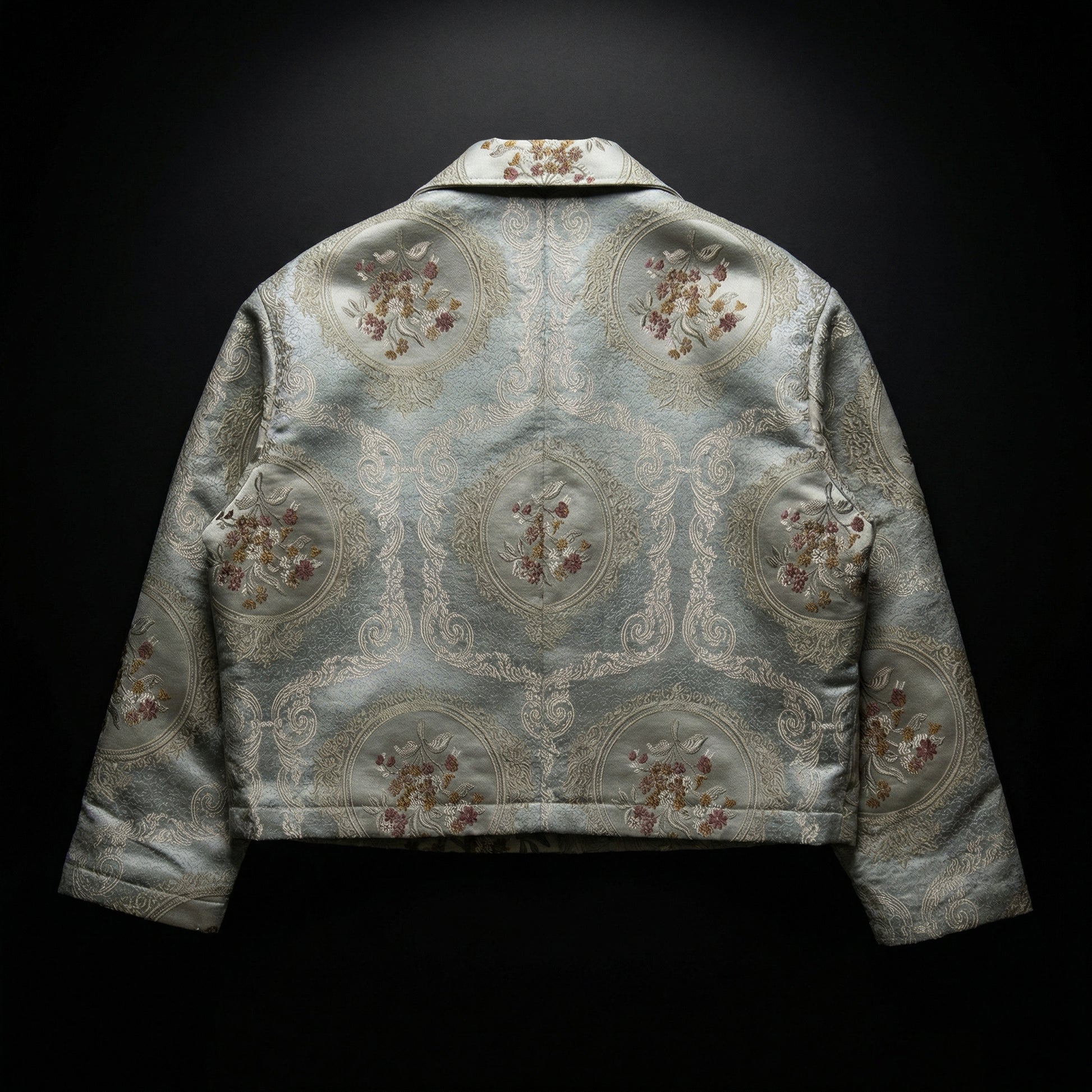 A cropped silhouette built on classic ornamentation.